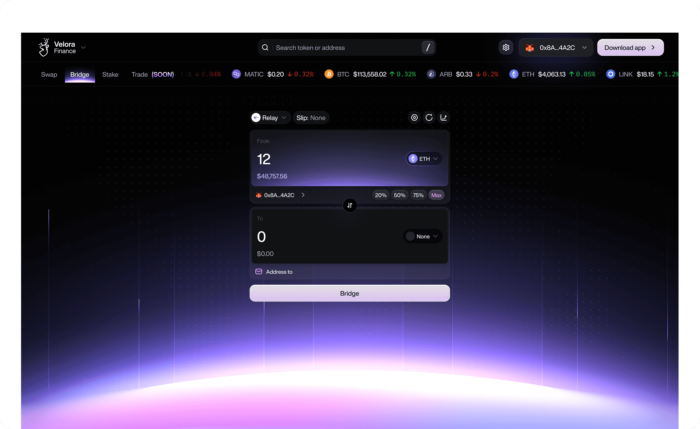 Velora simplifies token bridging by allowing users to move assets seamlessly across supported blockchains.